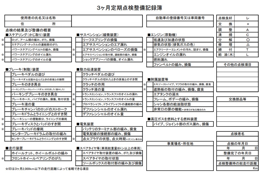 安全運行を維持するために、3ヶ月ごとに車両の状態を確認し、記録簿を作成する必要があります。