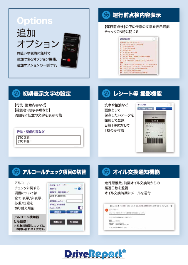コンレポの「アルコールチェック連動サービス」は、運転管理業務に必須なアルコール検査記録を簡単に管理できるクラウドサービスです。専用アプリ不要のWebサービスで、PC・スマホ・タブレットから入力可能。出張先など遠隔地でのアルコールチェックにもお使いいただけます。AI画像解析による自動入力で不正を防止し、アルコールチェックの負担も軽減します。ソシアックの対応機種(SC-103,SC-202,SC-402,SC-502)は準備期間なく、直ぐに利用可能です。